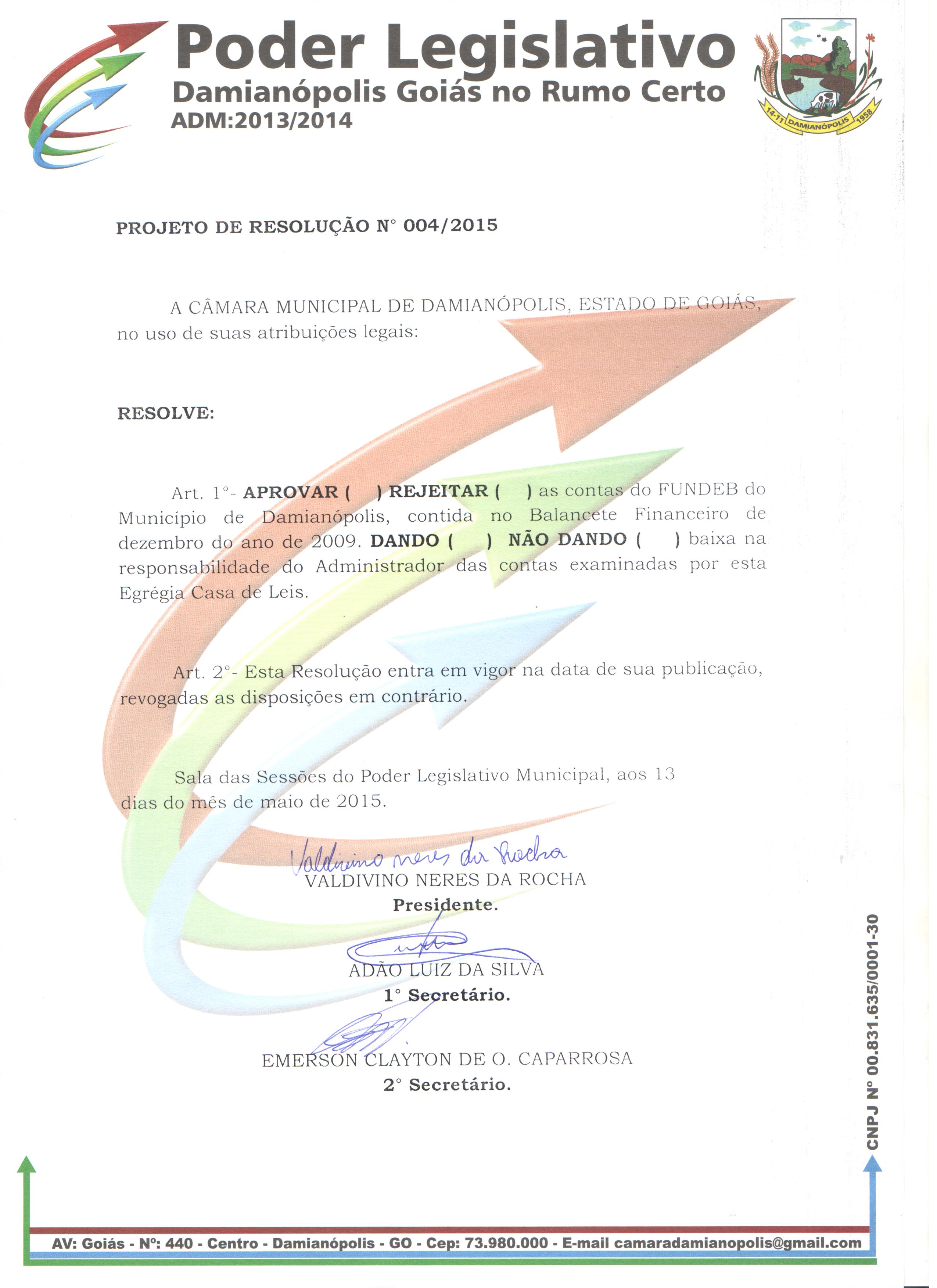 Na pauta da Ordem do dia da 1º sessão ordinária do mês de junho - 2º votação do Projeto de resolução nº 004/2015.